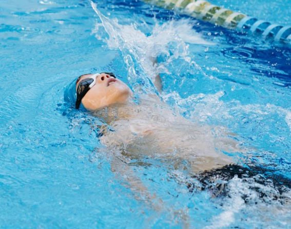 La compétence de propulsion par battement de jambes alterné est entraînée. La nage sur le dos est enseignée aux enfants avec le mouvement des bras.